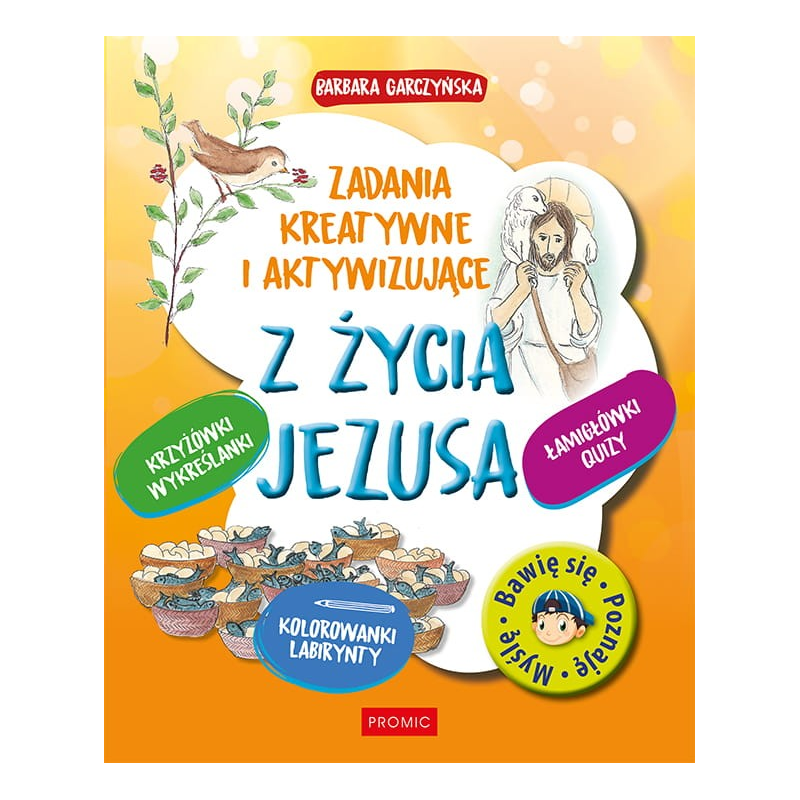 Rozwiąż krzyżówkę, a dowiesz się, jakimi słowami modlimy się do Boga, pokonaj labirynt, by odnaleźć Pana Jezusa, który zgubił się w drodze z Jerozolimy, przestaw litery w rozsypankach wyrazowych, aby poznać imiona tych, którzy szli za Jezusem. Wśród kolorowych ilustracji znajdziesz mnóstwo ciekawych zagadek, rebusów i innych łamigłówek, które rozwijają spostrzegawczość, uczą logicznego myślenia i poszerzają wiedzę, a wszystkie dotyczą życia i nauczania Pana Jezusa! Teraz na pewno zapamiętasz, co zdarzyło się w Kanie Galilejskiej i kto objawia się pod postacią gołębicy. Na każdej stronie umieszczono informację, gdzie o opisanym wydarzeniu przeczytasz w Biblii. Udanej zabawy!